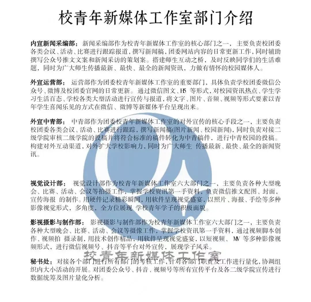 对于各个岗位面试情况,我们汇总出了以下几个高频问题,大家可以根据各自岗位职责需要做好面试准备。(以校青年新媒体工作室为例)