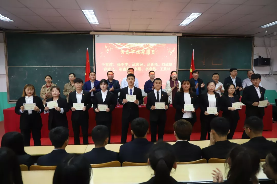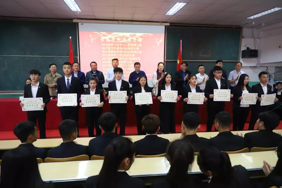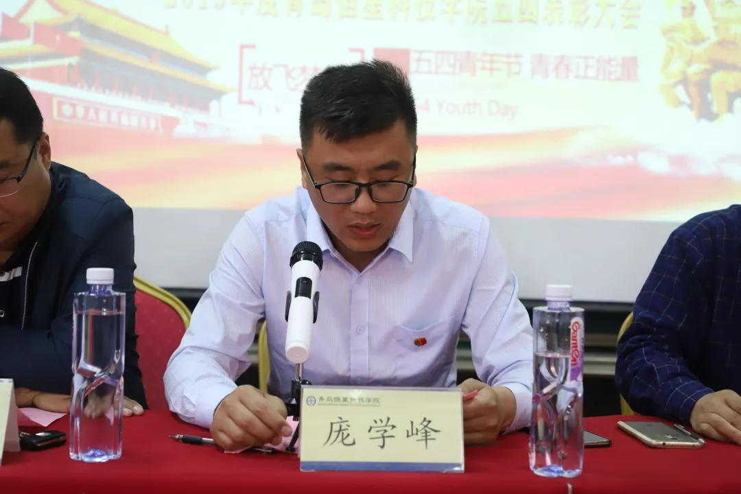 2019年5月15日16:00由青岛恒星科技学院校团委主办的五四表彰大会在A8-310教室隆重举行。出席本次活动的领导有:青岛恒星科技学院学生处处长刘华、青岛恒星科技学院校团委书记庞学峰、青岛恒星科技学院导师主管任丽梅、青岛恒星科技学院心理主管黄霞妮,以及各二级学院思政院长:信息学院思政院长左军、商学院思政院长刘良好、建筑学院思政院长房坤、装备学院思政院长王明辉、教育学院思政院长张良、健康学院思政院长钱同新、传媒学院思政院长张振兴。此外2019年新入团团员,获奖学生以及各二级学院优秀学生代表参加本次活动。活动由校学生会李旭同学主持。
