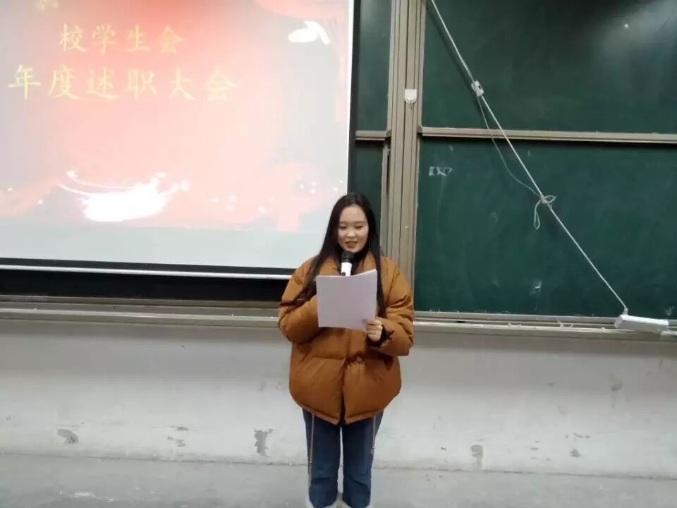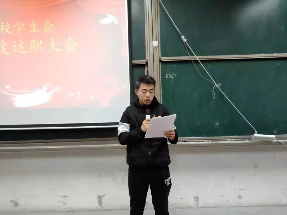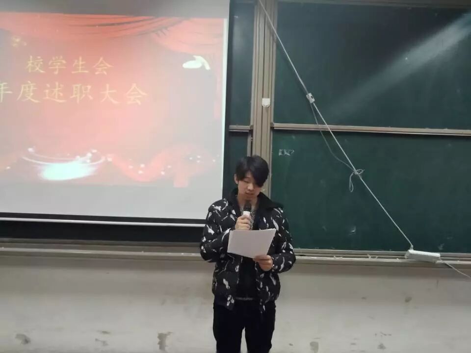 述职大会开始,校学生主席康博、秘书处处长张安琪、团学主席余晨阳、宣传主席王潇宇、进行了如下述职报告: