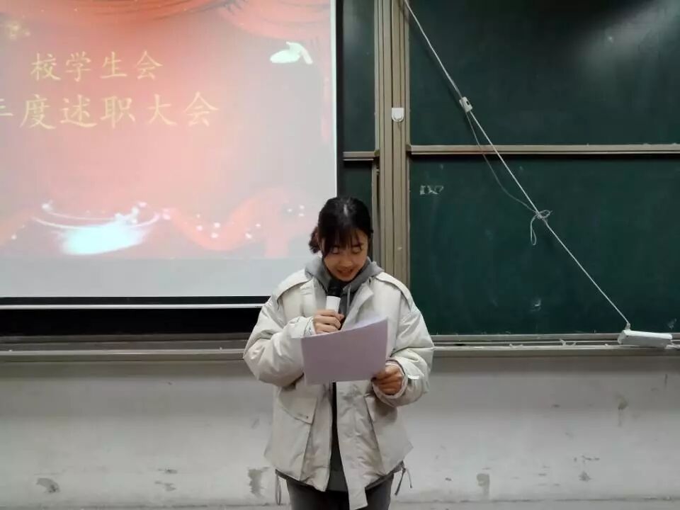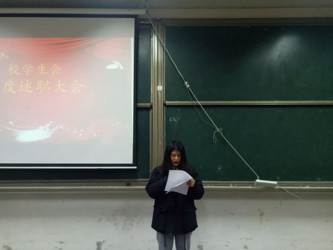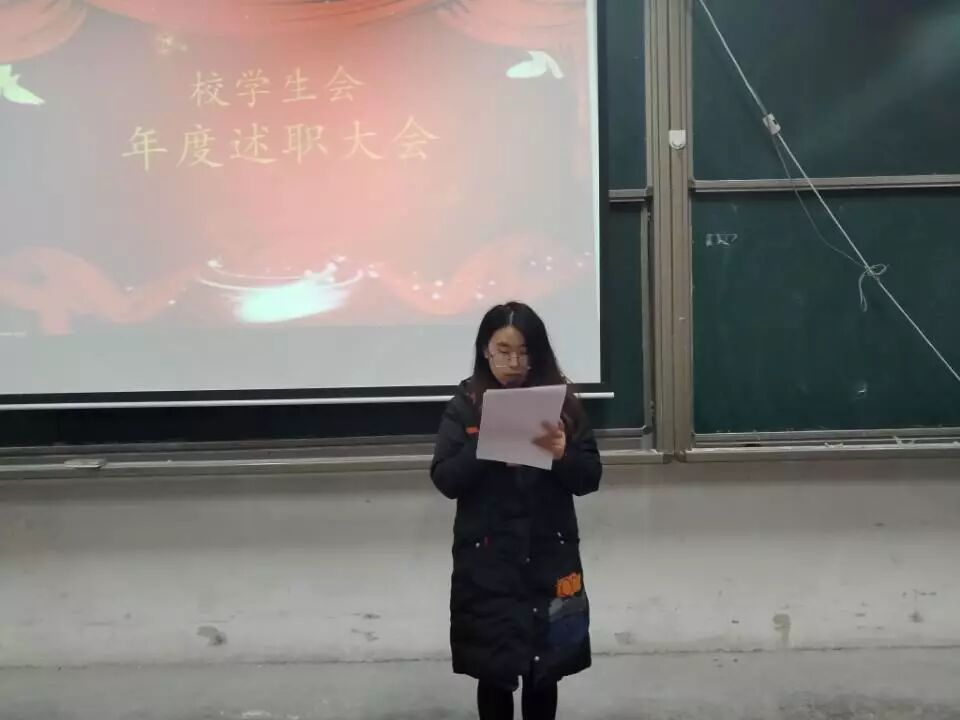 秘书处副处赵雅新、秘书处副处韩浩、秘书处副处李梦丹、学习部部长孙民民、外联部部长王卫士、 宣传部部长王青、广播站站长卢陆新、团学部部长刘悦、组织部部长赵思毓依次做出述职报告。