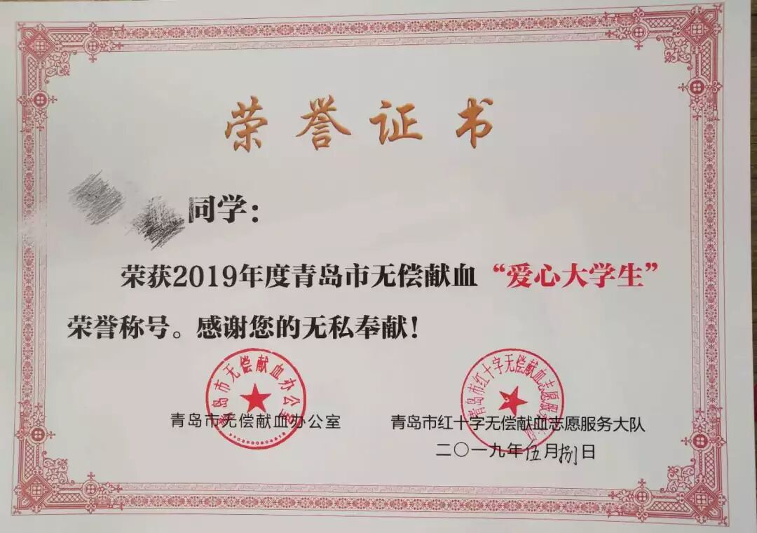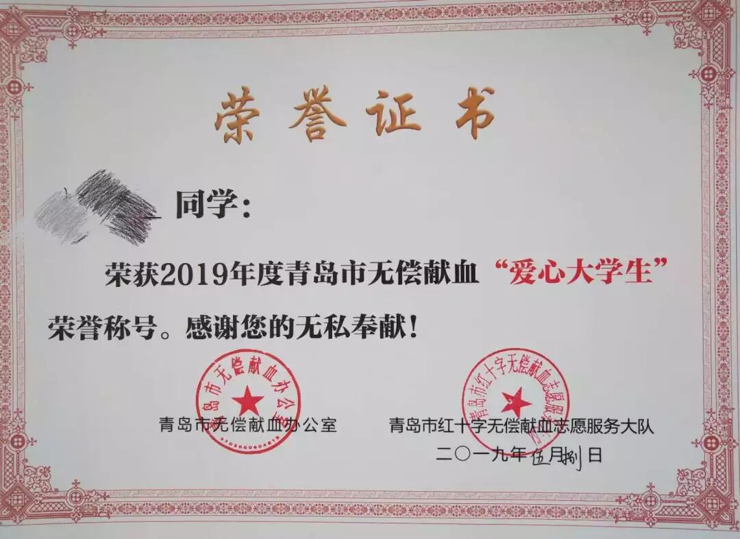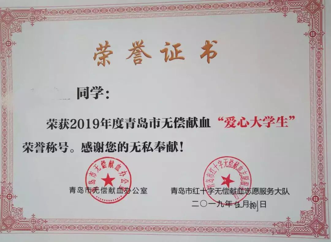 献血证书