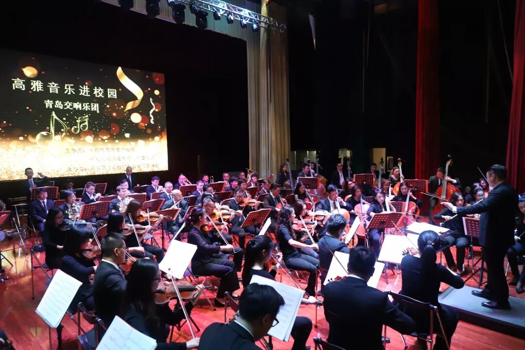 为庆祝中华人民共和国成立70周年,青岛市启动“高雅音乐进校园”活动。我校特邀青岛交响乐团于今日下午16:00在我校国际交流中心举办“感受经典,品位高雅音乐会”。