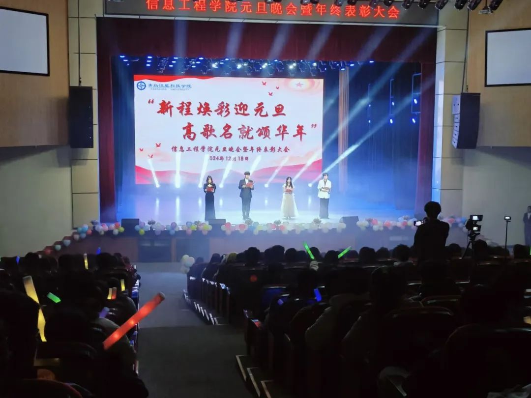 感受青春的活力与激情,享受元旦美好时光。信息工程学院在12月18日国际交流中心举行了“新程焕新迎元旦,高歌名就颂华年”元旦晚会。不仅展示了才艺,还增进了彼此之间的友谊。晚会充满了正能量,让我们对新的一年充满了期待和信心。