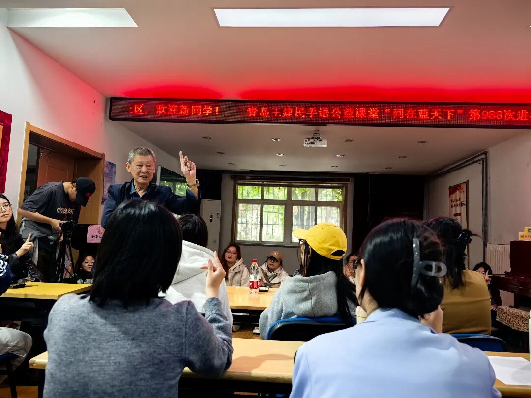 为增进健听人士与听障人群之间的交流,推动无障碍沟通环境建设,10月18日,青年志愿者协会爱无声志愿服务分队走进市南王建民手语工作室,成功开展“同在蓝天下”手语课堂。