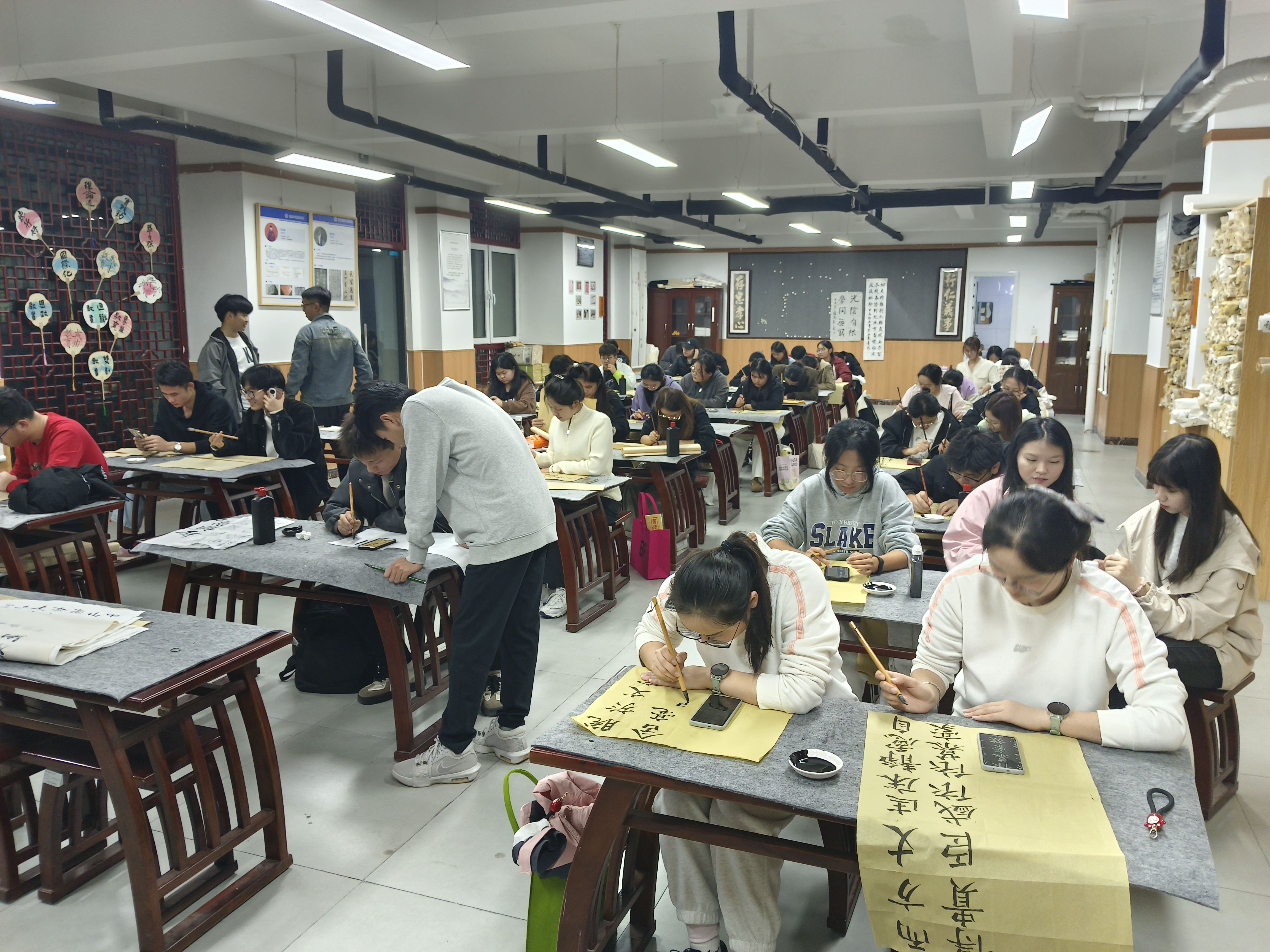 笔走龙蛇,铁画银钩。11月1日书法协会在g3-东佳书院举办了“笔墨书香,传承文化”书法主题活动,学习书法可以修养品行,提高人的道德素质;作为一门文化艺术,对于一个人道德品质的养成是大有裨益的,中国千年以来人们对书法的认知越来越多,学习书法可以使人平静心情。