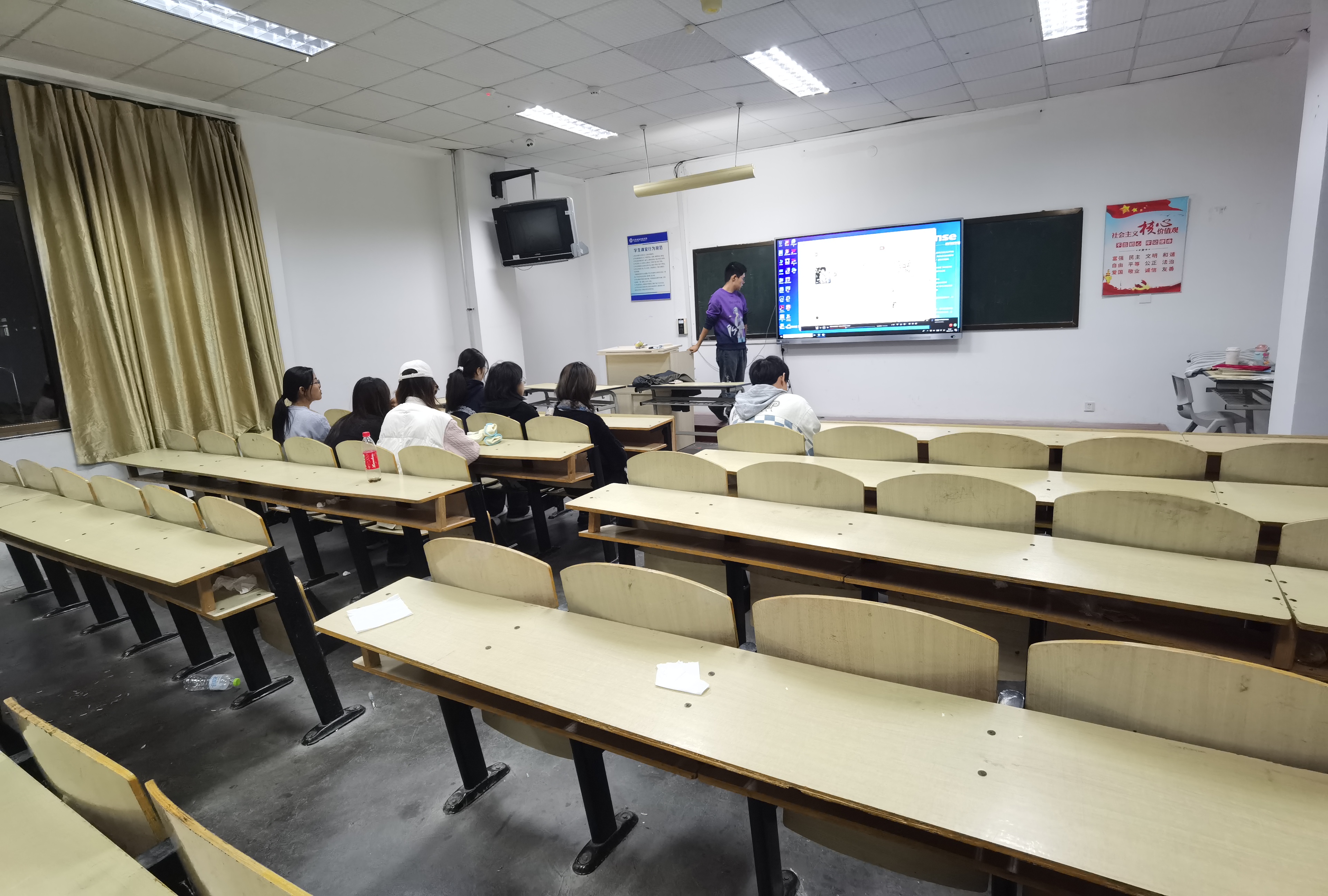 (图为程韵京剧社团理论指导课)