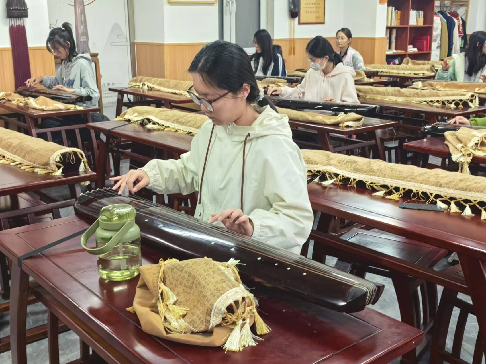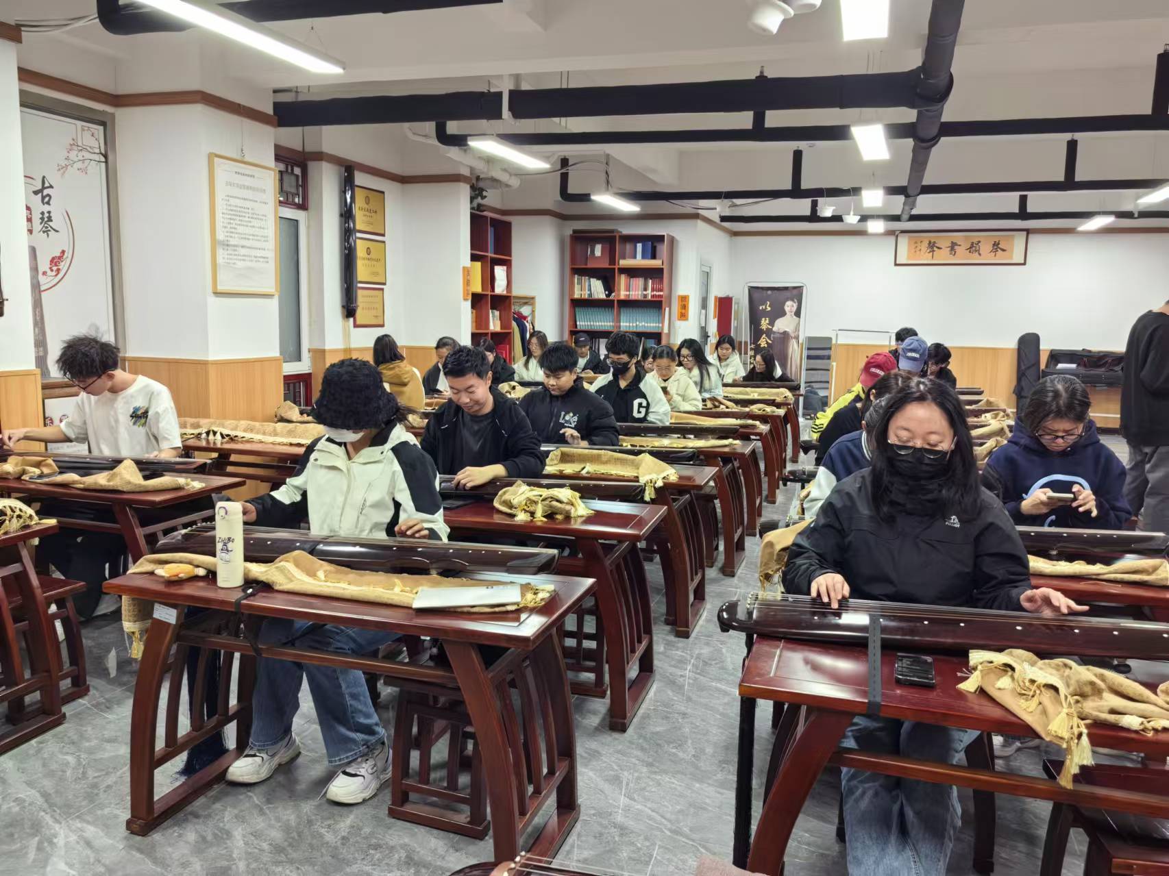 11月5日16:30-17:30七弦古琴社在G3北面东佳书院古琴传习室进行了“七弦益友”古琴教学课(四)的活动,从指法的精妙,到琴曲背后的历史典故,每一次学习都是一次与古人的对话,我们有经验丰富的老师,耐心指导,让你从生疏到熟练,从不懂到痴迷;踏入古琴社,仿若踏入千年之前的雅境,室内焚香袅袅,琴音绕梁,那一张张古朴的古琴,琴弦轻颤,似在诉说着岁月的故事。
