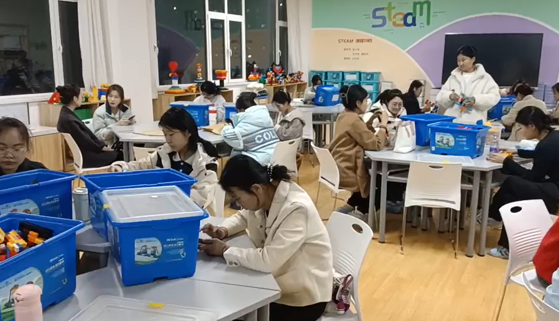(图为社员们在搭建作品)