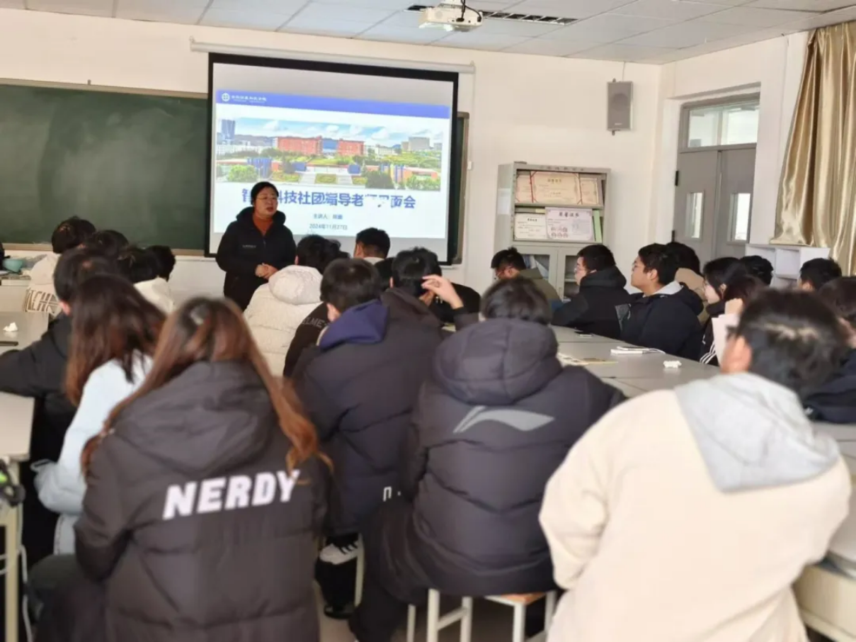 为了提高学生们的科技创新能力,智能科技社团于2024年11月27日在实验楼407开展了指导老师见面会,老师讲解了许多竞赛并且鼓励大家积极参与,提高自己的能力,丰富自己的阅历。