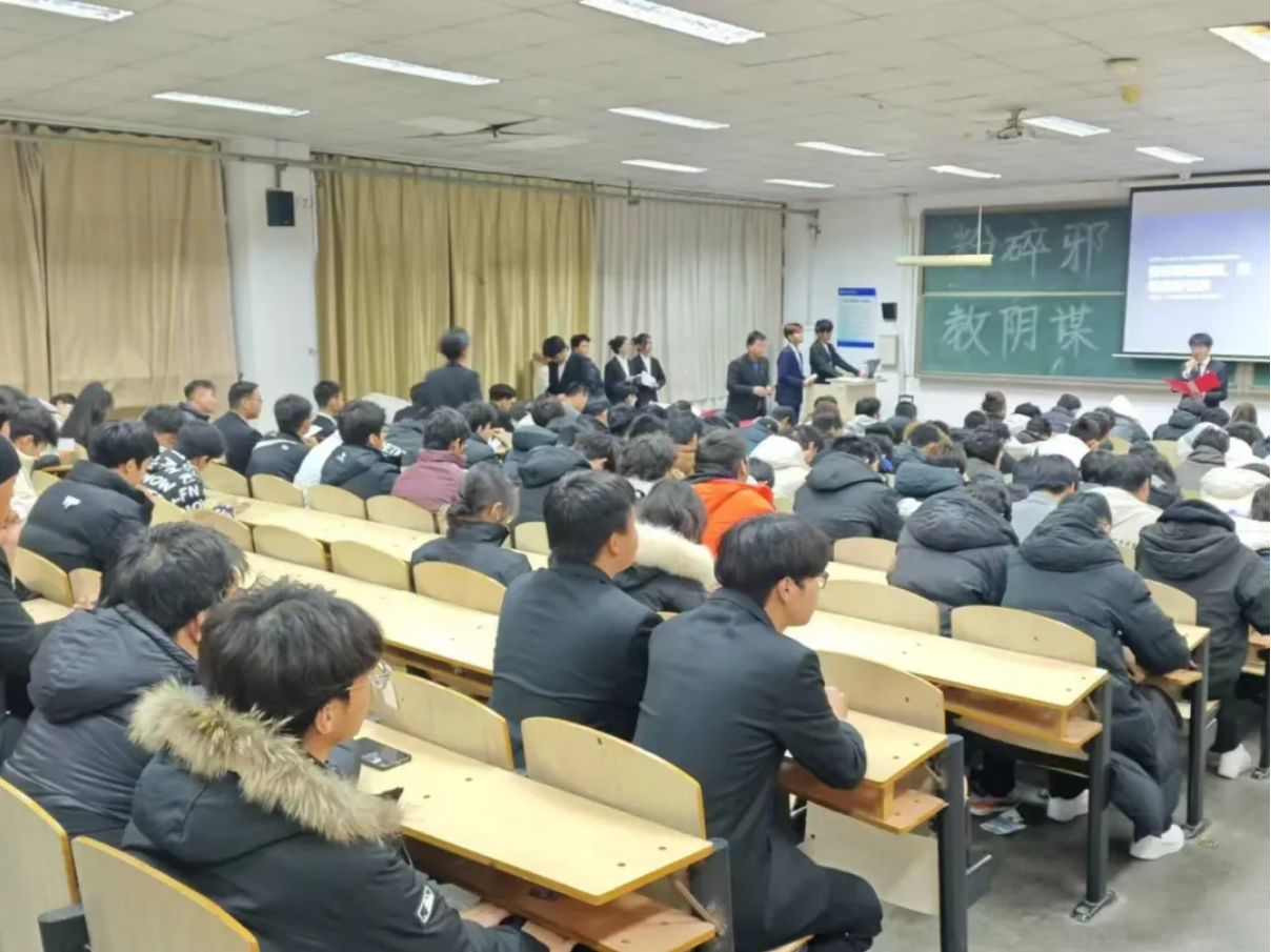 为了守护校园净土,构建防范邪教的坚固防线。机械与汽车工程学院组织部于11月26日晚在A4-902开展了“粉碎邪教阴谋,共筑美好世界”反邪教演讲活动。我们用科学知识武装自己,举起驱散邪教迷雾的明灯。用我们青春的活力与坚定的信念让邪教无所遁形,让未来充满希望与光明。