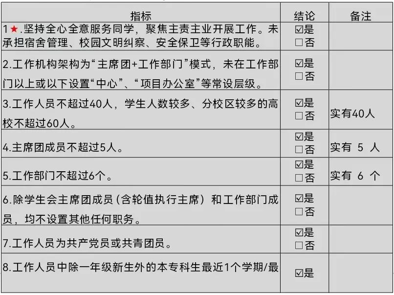 3.校院两级学生会组织改革自评表“备注”中的红色字体为需要提供的佐证材料,公开时自行删除(证明材料提交方式另行通知)
