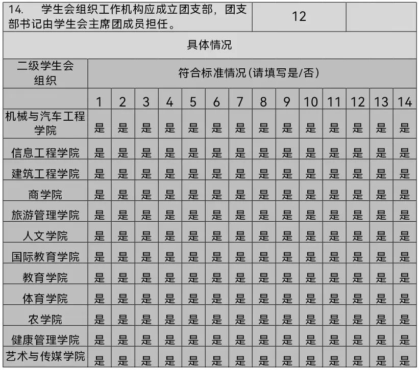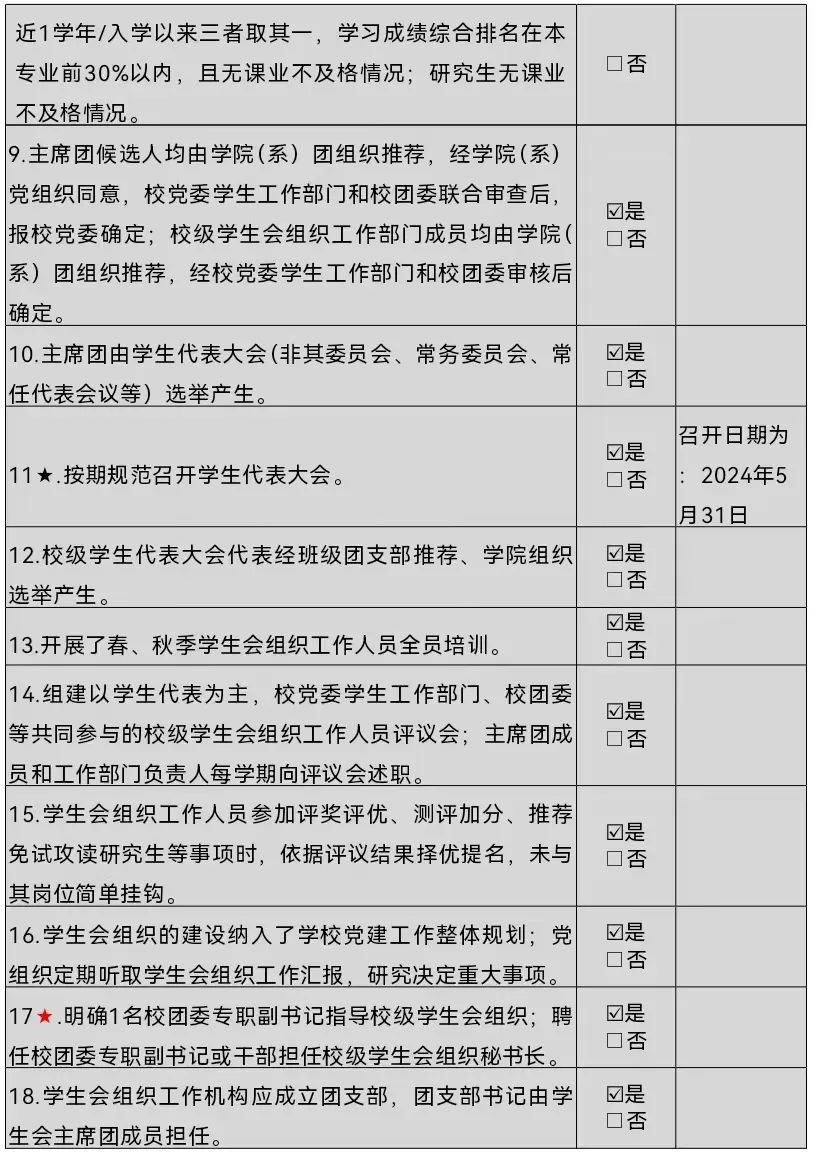 (二)二级学生会组织(含二级院系、书院、分校区等学生会、研究生会)改革自评表