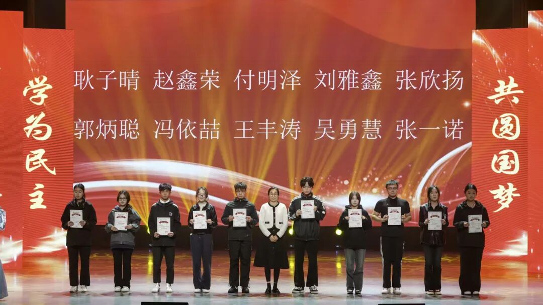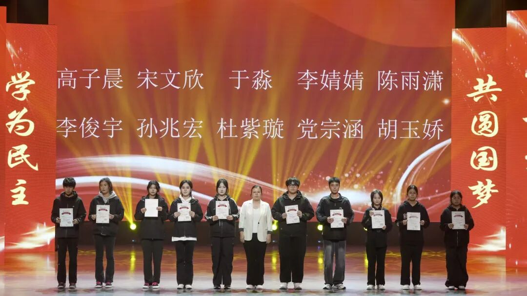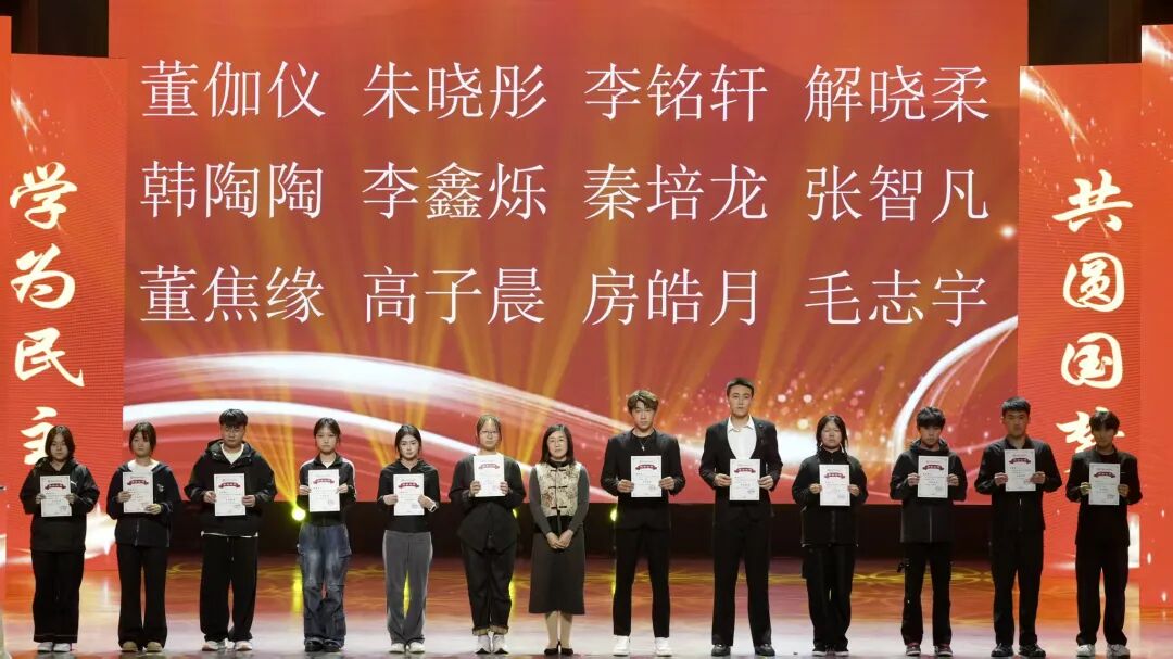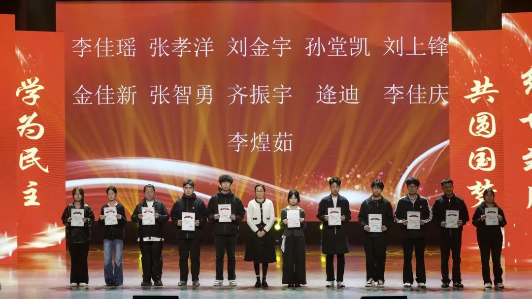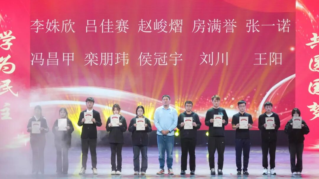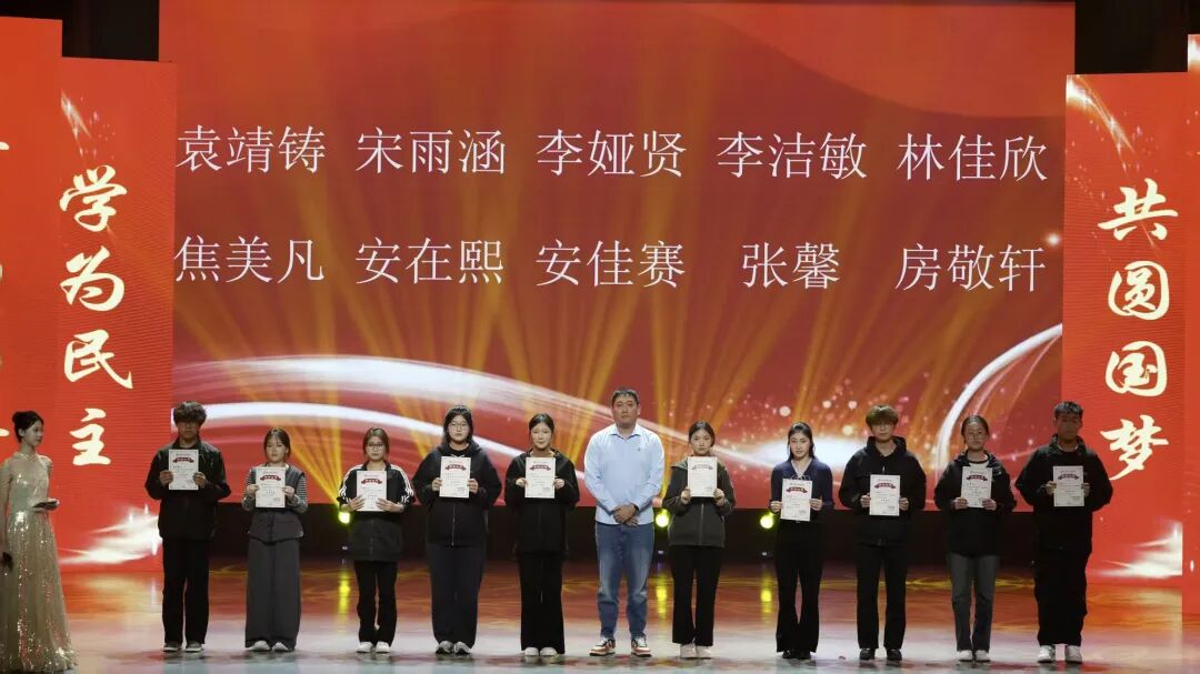 内务标兵:由宋虎岩院长和教学院长助理张学娜为袁靖铸、宋雨涵、李娅贤等四十二名同学颁发内务标兵奖。