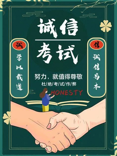 所谓“诚信”,“诚”主要讲的是诚恳、诚实,不弄虚作假,“信”是讲信用、信任,不欺诈坑弱,做到诚恳待人,以信用取信于人,对他人讲信任。诚信是为人处世的行为准则,是真善美的具体表现。孟子曰:“车无辕而不行,人无信则不立。”诚信自古来都是中华民族的传统美德。诚信考试,是责任感的体现,诚信应考,是道德品格的体现。诚信考试,需要考生的自我约束和自觉追求,在考试过程中端正学习与考试的态度,严格遵守考试规章制度,实事求是,杜绝一切考试作弊形式。诚信是公平考试的前提和必要条件,如果失去了诚信,考试将成为不公平竞争,也就失去了其应有的意义。从这个意义上讲,诚信考试不单单是对我们学习质量的检测,也是在检验学生的道德水准,更是对我们人格的一种考验。