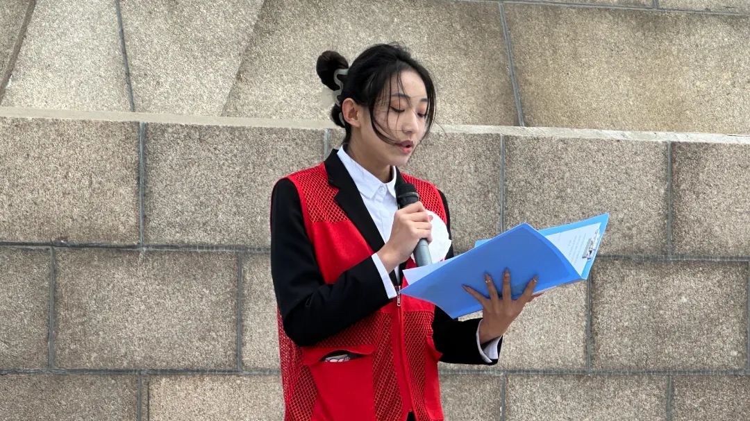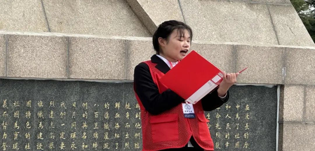 志愿者代表万陆佳进行发言,号召广大青年学子要从革命前辈身上汲取伟大力量,奋发有为,再立新功,努力成长为一名合格的社会主义接班人。