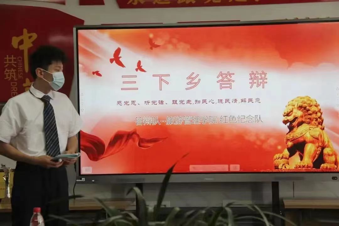 为深入学习宣传贯彻习近平新时代中国特色社会主义思想和党的十九届六中全会精神,贯彻落实习近平总书记关于青年工作的重要思想,深入学习习近平总书记在庆祝中国共产主义青年团成立 100 周年大会上的重要讲话精神,引导和帮助广大青年学生上好与现实相结合的“大思政课”,在社会课堂中“受教育、长才干、作贡献”,坚定信念听党话、跟党走,迎接党的二十大胜利召开,旅游管理学院于6月13日下午举行2022年旅游学院暑期文化科技卫生“三下乡”社会实践活动评审会。
