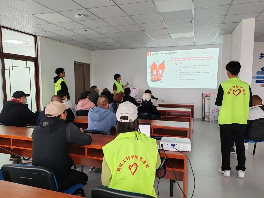 建筑工程学院实践团走进河西街道台柳路社区举办了一场“消防安全知识演讲”主题活动讲座。消防知识是保障生命财产安全的关键,让社区居民们掌握一定的消防技能是此次活动的核心主旨。将消防知识传播给更多的人,提高整个社会的消防意识。为创建一个安全、和谐的社会环境共同努力。通过此次讲座,让社区居民以及志愿者们自身对火灾的危害有了更深刻的认识,也了解到消防知识在火灾预防和应急处置中的重要作用。